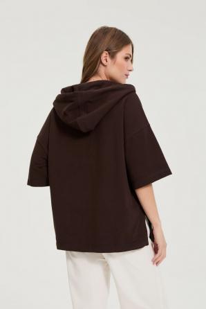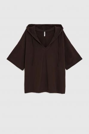 95% BAVLNA, 5% ELASTAN Tato hnědá mikina v sobě spojuje pohodlí a styl pro každodenní outfit. Měkká bavlna je příjemná na dotek, zatímco volný, oversized střih umožňuje volnost pohybu po celý den. Krátké rukávy a výstřih do V dodávají mikině nádech lehkosti, zatímco praktická kapuce vám umožní cítit se sebejistě v každé situaci. Boční rozparky umožňují mikině přirozeně splývat a neomezovat vás v pohybu. Jednoduchá, hladká a nevzorovaná látka dokonale doplňuje moderní minimalistický styl. Tato mikina je ideální do práce, na procházku nebo na neformální setkání s přáteli. Dobře se hodí k džínám, legínám nebo přiléhavé sukni a v chladnějších dnech ji lze zkombinovat s dlouhým kabátem. Ležérní charakter mikiny vám umožní vytvářet stylové a zároveň pohodlné outfity, které každý den zdůrazní váš individuální styl a ženskost.