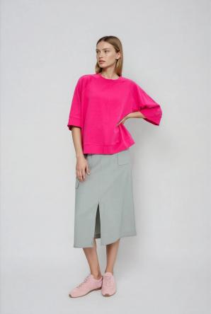 Mikina s krátkými a širokými rukávy v barvě fuchsiové