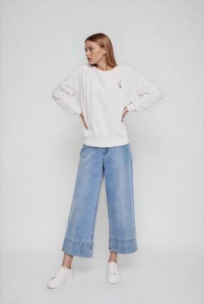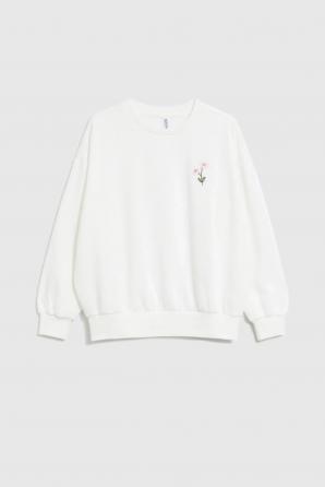 Bílá mikina s vyšívaným květem