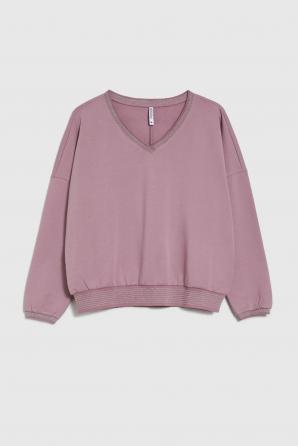 95% BAVLNA, 5% ELASTAN Tato dámská mikina v módním odstínu růžové se zlatými akcenty přitahuje pozornost svým minimalistickým, hladkým povrchem a decentním výstřihem do V. Dlouhé rukávy a elastické manžety zajišťují pohodlí a komfort po celý den. Střih bez kapuce s otevřenými zády umožňuje rychlé nazouvání a zdůrazňuje všestranný charakter mikiny. Je perfektní volbou pro každodenní nošení, schůzky s přáteli nebo relaxaci doma. Perfektně se hodí ke klasickým džínům, midi sukním a elegantním cigaretovým kalhotám. Skvěle se hodí k ležérním a lehce sportovním outfitům a dobře se hodí k teniskám, kotníkovým botám nebo balerínkám. Tato růžová dámská mikina s výstřihem do V zdůrazní váš individuální styl a dodá každému šatníku svěží nádech.