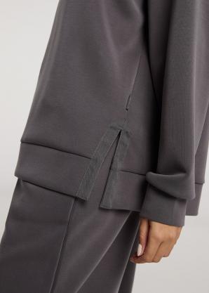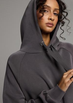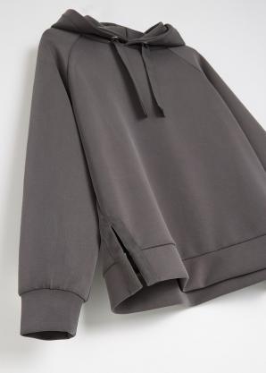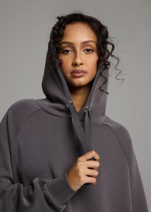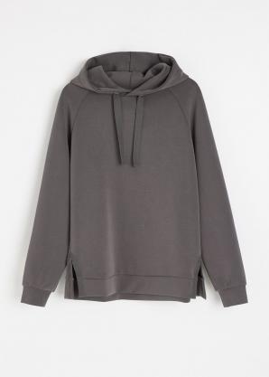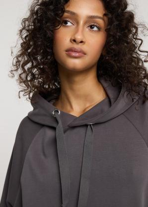 Klasická dámská mikina - má kapuci s nastavitelnými šňůrkami, - na dotek mimořádně příjemný viskózový úplet, - rozparky po stranách, - rukávy zakončené manžetami, - k dispozici v grafitové a chladivé světle béžové barvě.