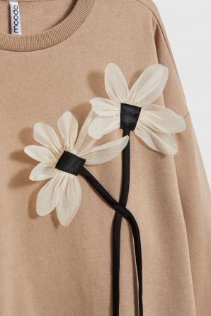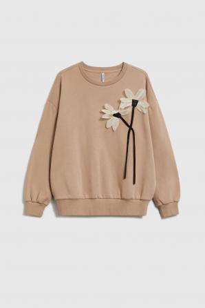Béžová mikina s květinovou aplikací