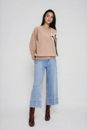 Béžová mikina s květinovou aplikací