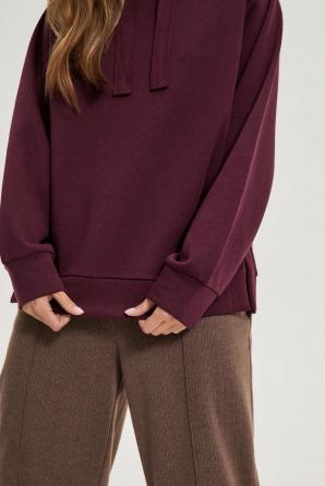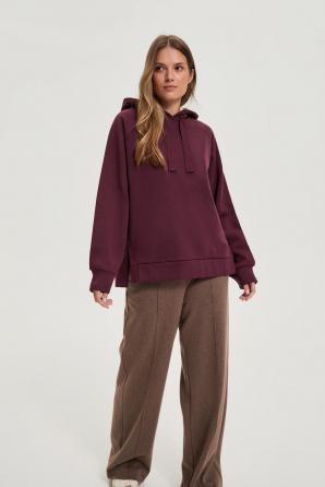 65% BAVLNA, 35% POLYESTER Tato dámská vínová mikina se vyznačuje hladkým, jednotným a nevzorovaným povrchem, který zdůrazňuje moderní minimalistický styl. Pečlivě vybraná bavlna zaručuje měkkost a prodyšnost, což zajišťuje celodenní pohodlí. Praktická kapuce s nastavitelnou šňůrkou chrání před chladem a elastické manžety a lem zajišťují perfektní střih. Ideální na procházku, setkání s přáteli nebo víkendový výlet. Perfektně se hodí k džínům, legínám nebo sportovní sukni a vytvoří tak pohodlný a módní outfit pro každou neformální příležitost. Skvěle se hodí k teniskám, kotníkovým botám nebo sportovní obuvi a podtrhne tak ležérní městský vzhled.