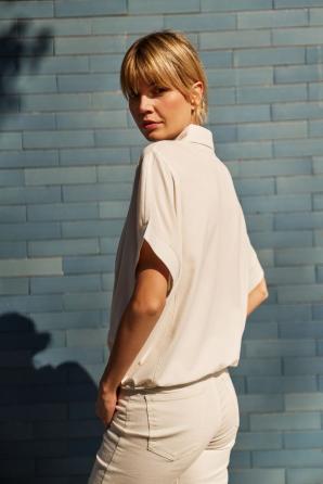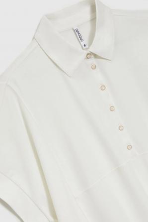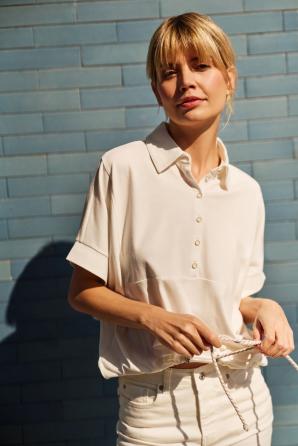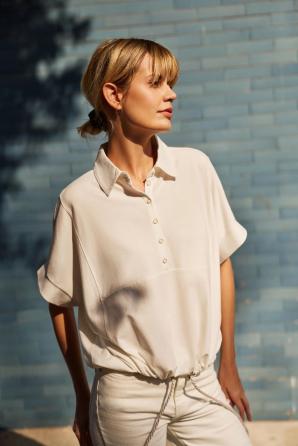 60% POLYESTER, 35% BAVLNA, 5% ELASTAN. Tato béžová mikina je vyrobena z vysoce kvalitního materiálu. Má jednoduchý, nevzorovaný střih, krátké rukávy a výstřih na knoflíky. Má také ozdobné šněrování a límec. Tento kousek je pohodlný na nošení a má všestranný design, který doplní různé outfity. Mikina je ideální pro každodenní nošení i pro formálnější příležitosti. Hodí se k kalhotám i sukni a vytváří tak elegantní i ležérní vzhled. Ideální na jaro a léto.