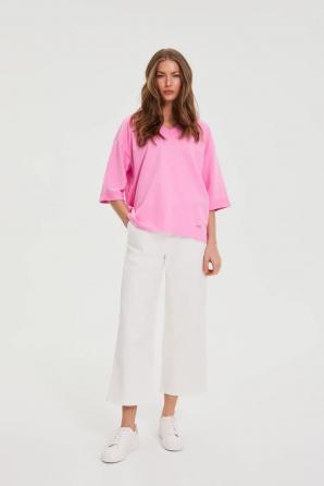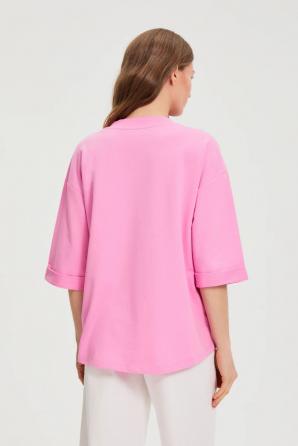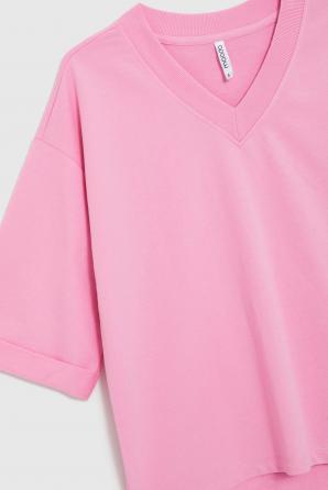 50% BAVLNA, 50% POLYESTER Tato růžová mikina je ideální pro ženy, které si cení pohodlí a svěžího, přirozeného stylu. Je vyrobena z měkké bavlny a poskytuje příjemný pocit pohodlí po celý den. Hladká textura a absence vzorů ji činí všestrannou, zatímco výstřih do V decentně zdůrazňuje linii dekoltu. 3/4 rukávy s manžetami dodávají mikině nádech lehkosti a dělají z ní perfektní kousek pro každou každodenní příležitost. Tato mikina je perfektní volbou do práce, na procházku nebo na neformální schůzky. Dobře se hodí ke klasickým džínům, pohodlným látkovým kalhotám nebo rovné sukni. Výrazný, ženský střih kombinuje každodenní ležérnost s nádechem městské elegance. Je pohodlným základem pro různé styly – vždy módní, stylové a ležérní.