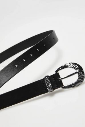 100% POLYURETAN. Tento černý dámský pásek vyrobený z ekokůže přitahuje pozornost svým minimalistickým designem a elegantním provedením. Jeho hladký povrch a absence vzoru z něj činí perfektní doplněk moderního stylu, zatímco ozdobná stříbrná přezka a poutko dodávají každému outfitu jedinečný nádech. Tento pásek je ideální jak pro formální příležitosti, tak pro každodenní nošení – do práce, na rande nebo na večerní vycházku. Perfektně se hodí ke klasickým džínům, elegantním kalhotám, jednoduchým šatům a sukním. Je to skvělá volba pro ženy, které si cení decentní elegance a všestranných doplňků šatníku.