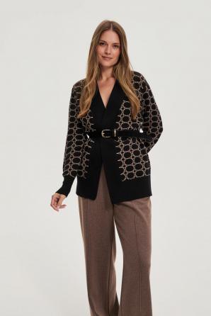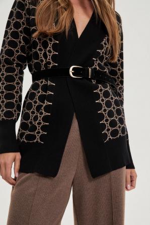 50% POLYURETAN 50% POLYESTER Tento černý dámský pásek, vyrobený z odolného polyuretanu s akcenty ze semiše, dokonale doplní jakýkoli outfit. Jeho hladká textura a absence vzoru mu dodávají nadčasový charakter, takže se hodí jak k ležérním, tak k elegantnějším outfitům. Dekorativní zlatá přezka v kombinaci s ozdobným poutkem na pásek je poutavý a módní doplněk, který zdůrazňuje individuální styl. Ideální volba pro obchodní schůzku, rodinnou večeři nebo večerní setkání s přáteli. Krásně se hodí ke klasickým džínům, cigaretovým kalhotám, šatům nebo sukni a vytváří tak ucelený a stylový vzhled. Spolehlivý doplněk, který doplní jakýkoli šatník, zdůrazní ženskost a moderní nádech.