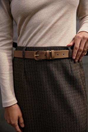50% POLYURETAN 50% POLYESTER Tento béžový dámský pásek s ozdobnou přezkou je stylovým doplňkem, který se vyznačuje elegantním, hladkým povrchem a decentními semišovými prvky. Ozdobné poutko a zlaté akcenty dodávají jedinečný nádech a umocňují módní vzhled každého outfitu. Je ideální volbou pro obchodní schůzky, elegantní večeře i každodenní výlety. Perfektně se hodí ke klasickým kostýmovým kalhotám, šatům a pouzdrovým sukním, dodá jim nádech elegance a zvýrazní pas. Tento béžový dámský jednobarevný pásek se také skvěle hodí jako ležérní doplněk k džínám nebo lněným kalhotám.