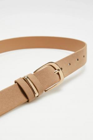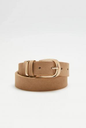 50% POLYURETAN 50% POLYESTER Tento béžový dámský pásek s ozdobnou přezkou je stylovým doplňkem, který se vyznačuje elegantním, hladkým povrchem a decentními semišovými prvky. Ozdobné poutko a zlaté akcenty dodávají jedinečný nádech a umocňují módní vzhled každého outfitu. Je ideální volbou pro obchodní schůzky, elegantní večeře i každodenní výlety. Perfektně se hodí ke klasickým kostýmovým kalhotám, šatům a pouzdrovým sukním, dodá jim nádech elegance a zvýrazní pas. Tento béžový dámský jednobarevný pásek se také skvěle hodí jako ležérní doplněk k džínám nebo lněným kalhotám.