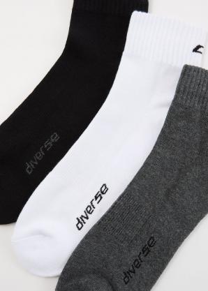 Balení 3 párů ponožek - žebrovaná manžeta, - střih u kotníků, - logo.