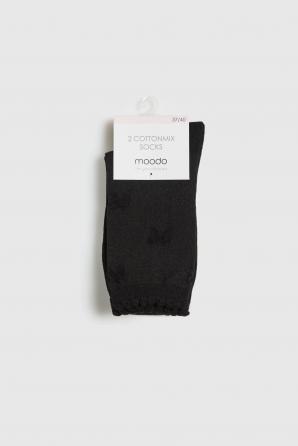 75% BAVLNA, 22% POLYESTER, 3% ELASTAN. Tyto černé dámské ponožky po kotníky se vyznačují jedinečným vzorem a decentními ozdobnými manžetami. Jsou vyrobeny z měkké bavlny s přídavkem strečových vláken, poskytují pohodlí, prodyšnost a odolnost. Jsou perfektní volbou pro každodenní nošení do práce, na vysokou školu nebo na procházku. Perfektně se hodí ke klasickým džínům, midi šatům a teniskám. Stylový doplněk, který pozvedne každý ležérní outfit.
