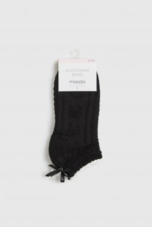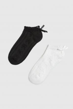75% BAVLNA, 22% POLYESTER, 3% ELASTAN Dámské ponožky v černé a bílé barvě. Měkká bavlna zajišťuje celodenní pohodlí, zatímco elastická vlákna zajišťují perfektní padnutí. Ozdobná manžeta dodává eleganci a dělá z těchto ponožek jedinečný prvek každodenního stylu. Ideální pro každodenní nošení, práci nebo schůzky s přáteli. Skvěle se hodí jak k sportovním teniskám, tak k klasickým mokasínům nebo balerínkám.