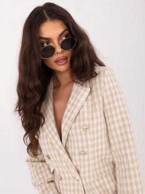 Dámské dvouřadé sako s podšívkou; všité ramení vycpávky, vzor kohoutí stopa, v barvě béžové