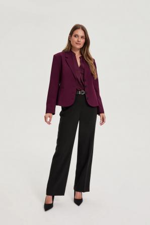 79% POLYESTER, 17% VISKÓZA, 4% ELASTAN, PODŠÍVKA: 100% POLYESTER Toto vínové sako je pro ženy, které rády kombinují pohodlí s nadčasovou elegancí. Hladký jednořadý střih decentně lichotí siluetě a dodává sebevědomí v každé situaci, zatímco měkká podšitá látka zajišťuje celodenní pohodlí. Klasický střih s dlouhými rukávy a praktickými kapsami je ideální do práce i pro každodenní aktivity. Měkká látka krásně splývá a sytě vínová barva dodává outfitu charakter a moderní nádech. Sako se perfektně hodí k elegantním kalhotám a košili, ale i k volným džínům nebo ženským šatům. Ideální pro obchodní schůzky, večerní zábavu nebo víkendové procházky – vždy vypadá módně a elegantně. Jeho ležérní, ale zároveň elegantní charakter dělá z tohoto kousku rychlý základ pro mnoho každodenních a jedinečných outfitů.