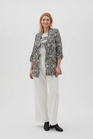 VNĚJŠÍ VRSTVA: 95 % POLYESTER, 5 % ELASTAN. PODŠÍVKA: 100 % POLYESTER. Elegantní bílé sako se zajímavým vzorem. Z lehkého materiálu, zdobené jedním knoflíkem, má jednořadý střih a délku tuniky. Perfektní pro každodenní i kancelářské použití. 3/4 rukávy s manžetami dodávají kouzlo a praktické kapsy jsou praktickým doplňkem. Výrobek vyrobený z polyesteru, s podšívkou. Toto sako bude perfektní volbou pro mnoho příležitostí, formálních i neformálních. Skvěle se bude hodit ke kalhotám i sukni a vytvoří elegantní a módní outfit. Ideální pro obchodní jednání, rande nebo večery s přáteli.