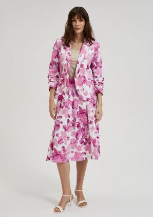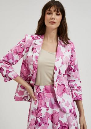 RŮŽOVÁ BUNDA S VOLÁNOVÝMI RUKÁVY A KVĚTINAMI