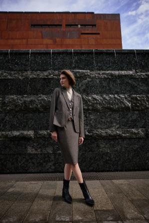 Toto hnědé sako s motivem rybí kosti vyniká svým nadčasovým designem a elegantním jednořadým zapínáním s ozdobnými knoflíky. Dlouhé rukávy a praktické kapsy zajišťují každodenní pohodlí, zatímco podšívka zvyšuje nositelnost a dodává kousku elegantní vzhled. Lehká polyesterová tkanina usnadňuje péči a zachovává si tvar i po mnoha praních. Tento model je ideální pro obchodní schůzky, neformální výlety i do práce. Perfektně se hodí ke klasickým džínům, cigaretovým kalhotám, jednoduchým šatům nebo pouzdrové sukni. Toto stylové hnědé sako s motivem rybí kosti dokonale doplní kreativní městské i kancelářské outfity.