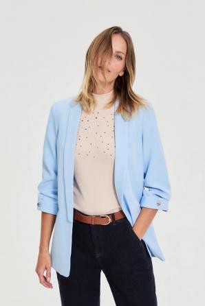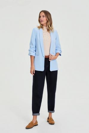 95% POLYESTER, 5% ELASTAN Toto klasické modré sako je ideální pro ženy, které si cení pohodlí a všestrannosti v každodenním nošení. Hladká tkanina s měkkou podšívkou zajišťuje celodenní pohodlí, zatímco nařasené tříčtvrteční rukávy dodávají saku lehký a moderní nádech. Praktické kapsy a jednoduchý střih činí z tohoto saka ideální volbu do práce, na schůzky nebo na procházky. Tento módní styl se snadno kombinuje s vašimi oblíbenými džínami, látkovými kalhotami nebo šaty. Je ideální pro ležérní výlety i elegantnější příležitosti – stačí přidat podpatky nebo klasické mokasíny pro stylový outfit. Ženský střih saka lichotí postavě a nadčasová barva usnadňuje vytváření ležérních i kancelářských outfitů. Je to perfektní volba pro ženy, které rády vypadají stylově a cítí se pohodlně každý den.