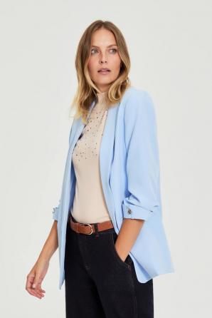 95% POLYESTER, 5% ELASTAN Toto klasické modré sako je ideální pro ženy, které si cení pohodlí a všestrannosti v každodenním nošení. Hladká tkanina s měkkou podšívkou zajišťuje celodenní pohodlí, zatímco nařasené tříčtvrteční rukávy dodávají saku lehký a moderní nádech. Praktické kapsy a jednoduchý střih činí z tohoto saka ideální volbu do práce, na schůzky nebo na procházky. Tento módní styl se snadno kombinuje s vašimi oblíbenými džínami, látkovými kalhotami nebo šaty. Je ideální pro ležérní výlety i elegantnější příležitosti – stačí přidat podpatky nebo klasické mokasíny pro stylový outfit. Ženský střih saka lichotí postavě a nadčasová barva usnadňuje vytváření ležérních i kancelářských outfitů. Je to perfektní volba pro ženy, které rády vypadají stylově a cítí se pohodlně každý den.