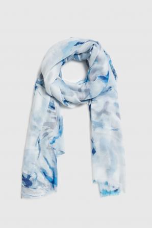 Dlouhý světle modrý vzorový šál