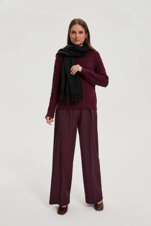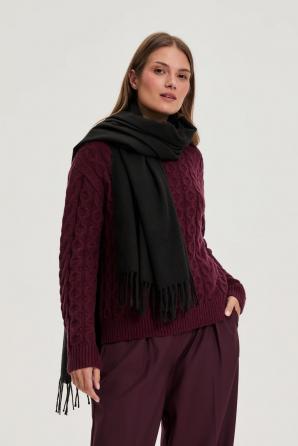 100% POLYESTER Tato černá dámská hladká šála zaujme svou hladkou texturou, která dodává vzhledu elegantní a nadčasový charakter. Třásně dodávají módní nádech a zdůrazňují jemnost a lehkost materiálu. Vyrobena z měkkého polyesteru, je pohodlná na nošení a příjemná na dotek, a přitom se snadno pečuje. Je to perfektní volba pro chladné dny v práci, setkání s přáteli nebo procházky po městě. Perfektně se hodí ke kabátu, bundě nebo svetru a dodá stylový nádech jak každodennímu, tak i elegantnějšímu outfitu.