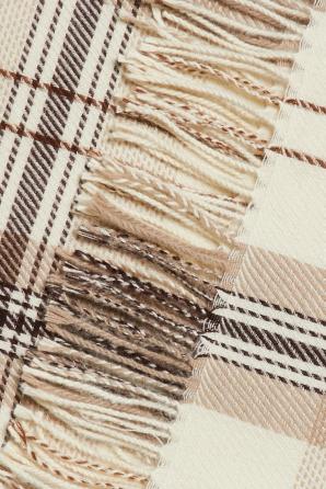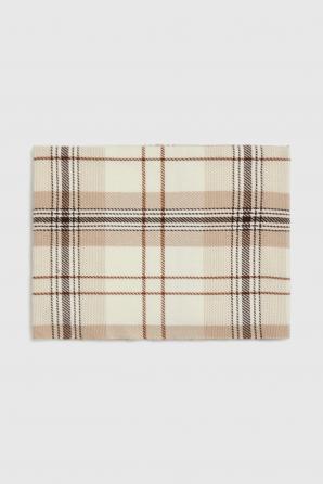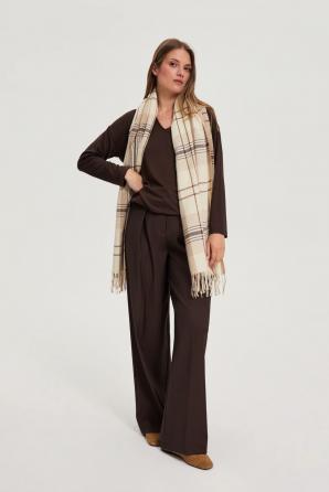 100% POLYESTER Béžová šála s hnědým kostkovaným vzorem. Ideální na podzim a zimu.