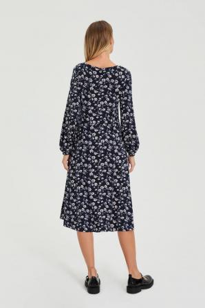 Tmavě modré midi šaty s květinovým vzorem