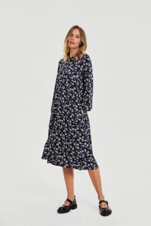 Tmavě modré midi šaty s květinovým vzorem