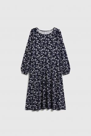 Tmavě modré midi šaty s květinovým vzorem