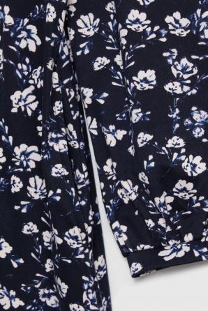 92% POLYESTER, 8% ELASTAN Tyto tmavě modré šaty s květinovým potiskem zaujmou svým decentním vzorem, který zdůrazňuje ženskost a přirozený styl. Měkká látka obepíná siluetu a lehce přiléhavý, rozšířený střih krásně splývá s pohybem a dodává každému kroku nádech lehkosti. Praktické kapsy a decentní řasení v pase kombinují pohodlí s módním nádechem, zatímco dlouhé rukávy s manžetami a kulatý výstřih vytvářejí harmonický celek, ideální pro aktivní dny. Materiál je měkký na dotek a umožňuje neomezený pohyb, což zajišťuje pohodlí od rána do večera. Šaty jsou ideální do práce, na procházku po městě nebo na neformální setkání s přáteli. V kombinaci s klasickými kotníkovými botami a krátkým kabátem vytvářejí stylový, ležérní vzhled, zatímco v kombinaci se sakem a podpatky získávají elegantnější charakter. Všestranný střih vám umožní cítit se pohodlně po celý den – bez ohledu na příležitost.