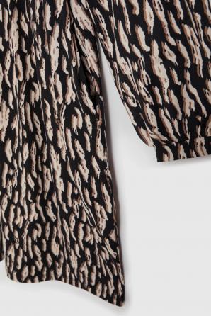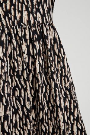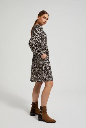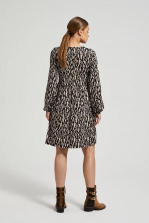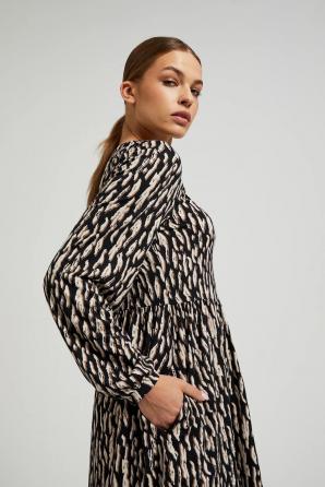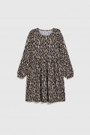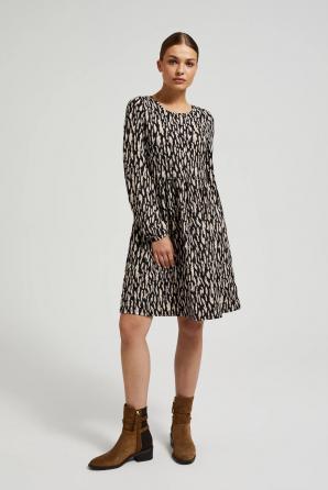 Hnědé šaty s nabíranými rukávy a rozšířeným spodním dílem