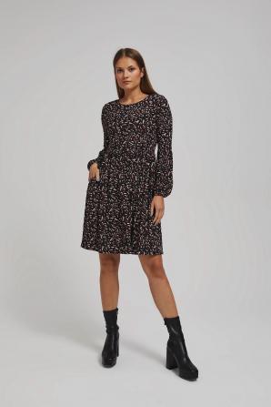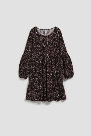 Rozevřené šaty v černé barvě jsou perfektní volbou pro každou ženu, která se chce cítit výjimečně a stylově. Jeho rozšířené rukávy dodávají lehkost a eleganci a kapsy jsou praktickým doplňkem, který vám umožní uložit drobnosti. Šaty jsou vyrobeny z polyesteru na rostlinné bázi, jsou příjemné na dotek a poskytují celodenní pohodlí.
