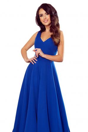 Cindy - dlouhé šaty s výstřihem vpředu a vzadu. Vyrobeno z příjemného materiálu na dotek v módní modré barvě. Připíná se vzadu zakrytým zipem