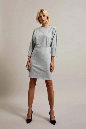Šaty, bez vzoru, z hladkého materiálu. Tento model se vyznačuje elegantním střihem, který zvýrazňuje pas a dodává na třídě. Volány dodávají šatům jedinečný charakter, díky čemuž jsou ideální pro zvláštní příležitosti a do práce. Díky svému klasickému vzhledu se skvěle hodí i pro každodenní použití. Šaty mají lodičkový výstřih a jsou po kolena. Tento model šatů bude perfektní volbou pro mnoho různých příležitostí. Můžete jej nosit do práce, na setkání s přáteli nebo na rande. Skvěle se bude hodit jak k elegantním vysokým podpatkům, tak k neformálním botám. Šaty bez vzoru budou díky svému univerzálnímu designu skvělým doplňkem vašeho šatníku.