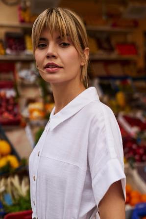 Modelka na obrázku: výška - 178 cm, rozměry 83/59/88, velikost na obrázku - horní část-S, spodní část-S