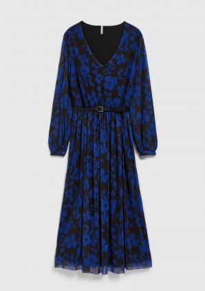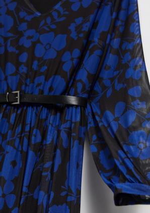 MODRÉ ŠATY S KVĚTINOVÝM POTISKEM A PÁSKEM