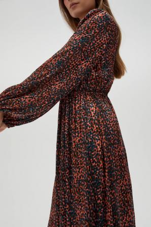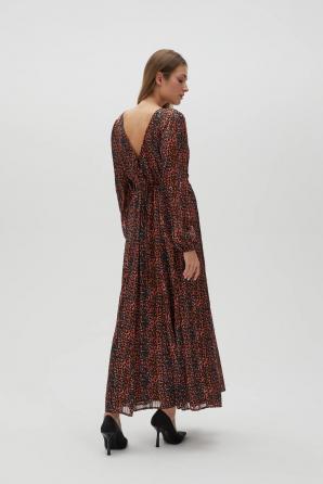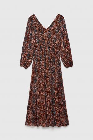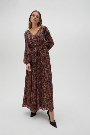Hnědé maxi šaty s nabíraným rukávem