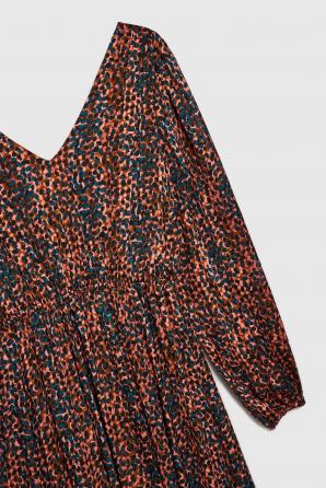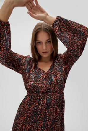 PODŠÍVKA:100% POLYESTER. Hnědé šaty zdobené zvířecím potiskem jsou perfektní volbou pro ženy, které si cení elegance a pohodlí. Rozšířené rukávy a řasení dodávají kouzlo, zatímco elastický pas zvýrazňuje pas. Přiléhavé trapézové šaty jsou ideální pro mnoho příležitostí, jak pro každodenní, do práce, tak pro zvláštní příležitosti. Výstřih do V opticky prodlužuje siluetu a maxi délka dodává na třídě. Lze jej kombinovat s elegantními vysokými podpatky nebo sandály pro vytvoření elegantního vzhledu.