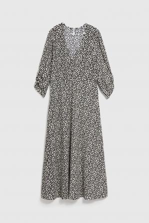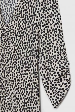 97% POLYESTER, 3% ELASTAN Béžové šaty s černými puntíky jsou perfektní volbou pro každou ženu, která si cení klasiky a elegance. Vyrobeno z vysoce kvalitního polyesteru, potěší obláčky a volány, které mu dodávají kouzlo. Tečkovaný potisk dodává šatům jedinečný charakter a pletenina je extrémně pohodlná na nošení. Výstřih do V zdůrazňuje ženské přednosti a vypasovaný lichoběžníkový střih dokonale zvýrazní postavu. Šaty jsou vhodné jak pro speciální příležitosti, tak pro každodenní práci. Skvěle se bude hodit jak k elegantním vysokým podpatkům, tak ke každodenním teniskám nebo kozačkám. Ideální nabídka pro ženy, které oceňují pohodlí a styl.