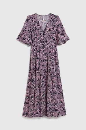 Vzorované tmavě modré viskózové šaty