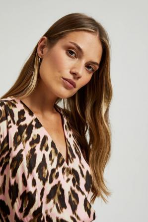 Šaty v odstínech hnědé a růžové jsou perfektní volbou pro každou ženu, která si cení elegance a pohodlí. Tyto asymetrické šaty z kvalitního materiálu se zvířecím vzorem dokonale zdůrazní pas a volány dodají šarm a lehkost. Psací výstřih a zip dodávají eleganci a šaty po kolena dělají šaty vhodné jak pro zvláštní příležitosti, tak pro každodenní použití. Tyto elegantní vypasované šaty budou perfektní volbou na formální události, obchodní jednání nebo romantickou večeři. Lze jej kombinovat s klasickými vysokými podpatky a jemnými šperky a vytvořit tak jedinečný a stylový vzhled. Skvěle se hodí k saku nebo elegantnímu saku, ale bude dobře fungovat i s džínovou bundou a teniskami, čímž vytvoří ležérní styling. Šaty pro každou příležitost!