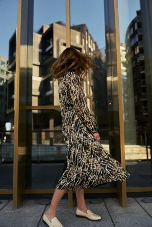 95% POLYESTER, 5% METALICKÁ NIT, PODŠÍVKA: 100% POLYESTER. Šaty midi délky s květinovým potiskem. S dlouhými rukávy a výstřihem do V. Jemný pásek v pase.
