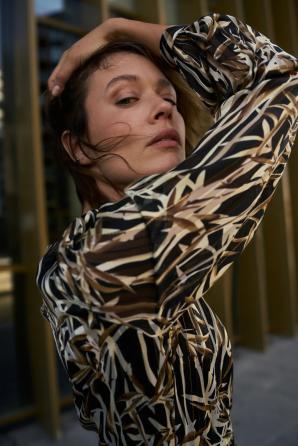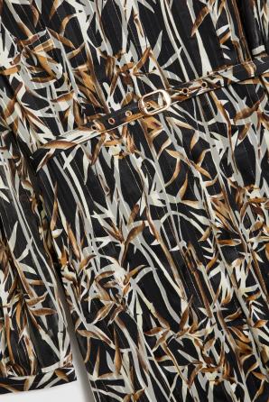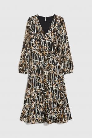 95% POLYESTER, 5% METALICKÁ NIT, PODŠÍVKA: 100% POLYESTER. Šaty midi délky s květinovým potiskem. S dlouhými rukávy a výstřihem do V. Jemný pásek v pase.