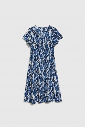 Modré midi šaty s krátkým rukávem