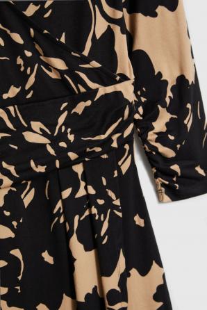 92% POLYESTER, 8% ELASTAN Tyto černé šaty s decentním květinovým potiskem jsou ideální pro ženy, které rády kombinují módu s pohodlím. Úplet a přiléhavý střih zdůrazňují siluetu. Asymetrická délka dodá šatům lehký vzhled, zatímco výstřih do V jemně zvýrazňuje krk. Měkká a pružná látka umožňuje volný pohyb a pozvedá každodenní styling. Ideální pro den v práci, schůzku s kamarádkou nebo dlouhou procházku po městě. Vypadají skvěle jak s klasickým sakem, tak s džínovou bundou a v kombinaci s kotníkovými botami nebo pohodlnými teniskami vytvářejí stylový a ležérní vzhled. Tyto šaty jsou všestranné – hodí se jako elegantní základ, ale snadno je lze proměnit v ležérnější outfit. Každý detail byl navržen s ohledem na každodenní pohodlí a výjimečnou ženskost.