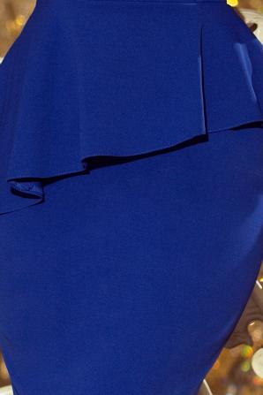 Elegantní midi šaty s asymetrickým límcem a malými krátkými rukávy. Šaty opticky slims pasu a skrývá nedokonalosti kolem boků
