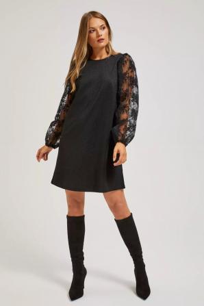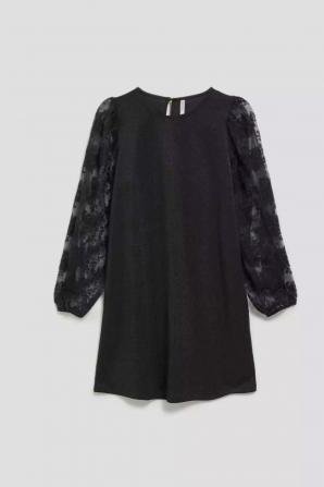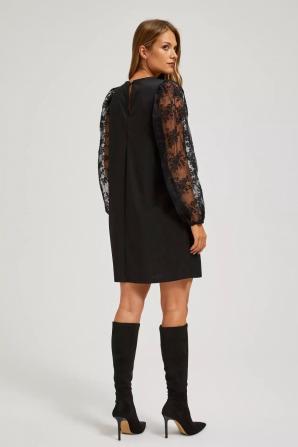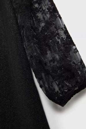95% POLYESTER, 5% ELASTAN Jedinečné šaty jsou perfektní volbou pro každou ženu, která chce vypadat oslnivě a elegantně. Jeho černá barva mu dodává jedinečné kouzlo a nedostatek vzoru a hladká polyesterová tkanina mu dodává třídu a šik. Rukáv z tylu dodává šatům jemnost a lehkost. Šaty mají klasický trapézový střih, který dokonale zvýrazní postavu a délka do půli stehen je velmi ženská a stylová. Zapínání vzadu na malý knoflík. Tento neobvyklý produkt je vhodný pro mnoho příležitostí, zejména pro ty, které vyžadují eleganci a šik. Může to být perfektní volba pro svatbu, párty, večer nebo výročí. Šaty se perfektně hodí k různým šatům. Lze jej kombinovat s vysokými podpatky, elegantními sandály nebo balerínky. Slušet bude jak s jemnými šperky, tak s extravagantnějšími doplňky. Bez ohledu na to, jak to zkombinujete, rozhodně přitáhnete pozornost a budete se cítit nesmírně fenomenálně.
