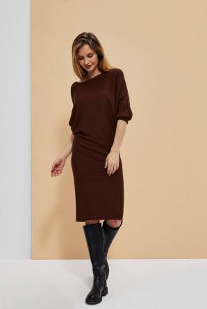 Teplé hnědé šaty s jemnou žebrovanou texturou.
