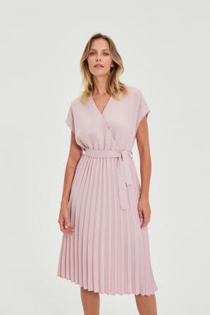 100% POLYESTER Tyto šaty v jemném odstínu růžové kombinují ženský styl s každodenním pohodlím. Hladká, lehce třpytivá látka krásně splývá a zdůrazňuje pas elastickým lemem. Plisovaný, rozšířený lem a asymetrický střih dodávají šatům lehký a vzdušný vzhled, zatímco výstřih do V s praktickým zapínáním na druk decentně zvýrazňuje dekolt. Módní sklady ladí s okouzlujícím stylem, takže jsou ideální jak pro rušný den, tak pro zvláštní příležitosti. Ideální do kanceláře, na schůzku s přáteli nebo na večerní zábavu. Šaty se krásně hodí k elegantnímu saku, klasickým lodičkám nebo teniskám. Přiléhavý střih a délka do poloviny stehen zdůrazňují ženskou siluetu, zatímco všestrannost vám umožní vytvářet ležérní i elegantnější outfity. Jsou to volby pro ty, které si cení módního stylu, pohodlí a jemné elegance pro každodenní nošení.